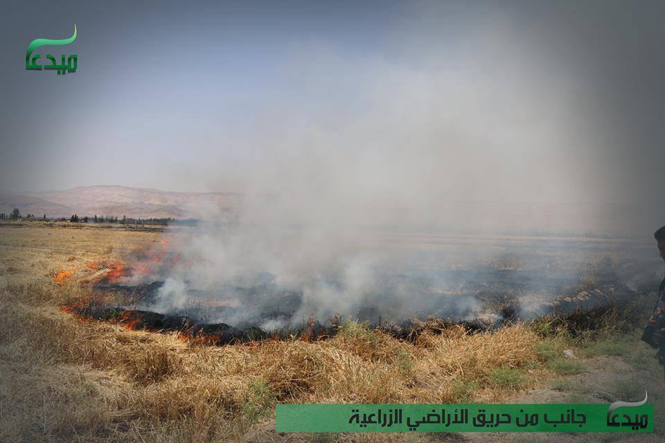 يستمر تحليق الطيران الحربي السوري في الأجواء لمتابعة مهامه في قتل الشعب السوري، من قصف للمناطق السكنية والمدارس والمخابز والأسواق وصولاً إلى استهداف المشافي وكل ما من شأنه أن يساهم في استمرار حياة المواطنين، إلا أن مهام إضافية في شهر حزيران باتت على عاتق سلاح الجو السوري، ألا وهي استهداف الأراضي المزروعة بالقمح.