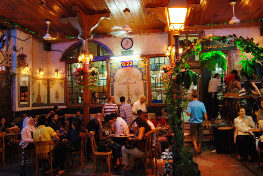 وكان الناس في سنوات ما قبل الثورة، يقصدون المقاهي التي كانت تحيي إرث الحكواتي في الشهر الكريم، وتعدُّ مقهى النوفرة المحاذية للجامع الأموي في قلب دمشق القديمة من أشهر تلك المقاهي، حيث كان يجلس الحكواتي على كرسي مرتفع يتصدر المقهى الشعبي، ويقصّ على الحاضرين قصص “عنترة العبسي”، و”الزير سالم”، و”الظاهر بيبرس”، و”أبي زيد الهلالي”.