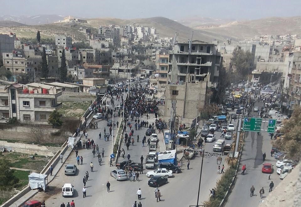 يُذكر أن الأهالي قد استجابوا لنداءٍ دعا إليه ناشطون على الانترنت، للخروج بمظاهرة جابت شوارع المدينة، ونددت بالأحوال الصعبة التي تعيشها. وطالبت الفصائل العاملة بعدم المتاجرة بدمائهم وأرزاقهم. في الوقت الذي انتشرت فيه كثيرٌ من الحسابات والصفحات على وسائل التواصل لكشف الصفقات التي يجريها المسلحون مع قوات النظام، منددة باستهتار الفصائل بمصير الأهالي وأرزاقهم.