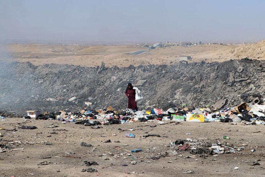 تتردد هذه السيدة الخمسينية إلى مكبّ للنفايات يقع بريف المالكية بحثاً عن رزقها أو بعض الطعام بين أكوام وأكياس النفايات لتسد جوعها، وعفراء المنحدرة من بلدة الصور بريف دير الزور الشرقي، هربت قبل خمس سنوات من قبضة متطرفي تنظيم (داعش) بعد سيطرتهم على المنطقة آنذاك، واستقرت في المالكية. وعن عملها تقول في حديثها لمجلة طلعنا عالحرية: “هذه نعمة، إذا رفضناها سنموت جوعاً، رغم كل هذه الأوساخ والروائح أستطيع تحملها لتأمين مصروف بيتي وعائلتي”. أثناء حديثها حدقت في أكياس النفايات السوداء المتناثرة بكل مكان، وبين يديها كيس فارغ لوضع قطع البلاستيك، وأضافت قائلة: “ظروفنا قاسية، وأسعار المواد والسلع الأساسية ارتفعت كثيراً، وأنا أعمل لسدّ نفقات أسرتي، لأن زوجي لا يستطيع العمل، فقد أصيب بشظية قذيفة هاون عندما هربنا من الصور”.