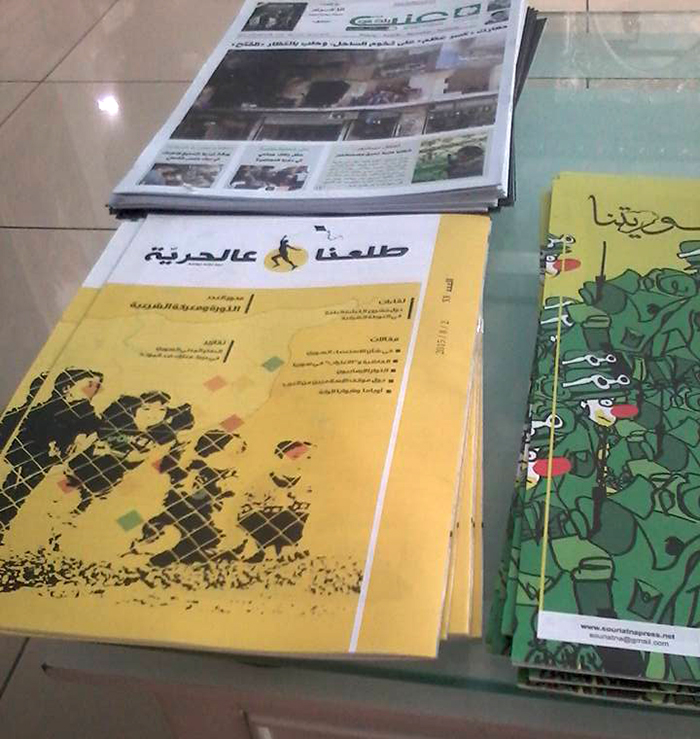 بعض الصور لنسخ من مجلة طلعنا عالحرية الموزعة في عدد من المناطق السورية وفي بعض مخيمات النزوح وتجمعات السوريين في المدن التركية.