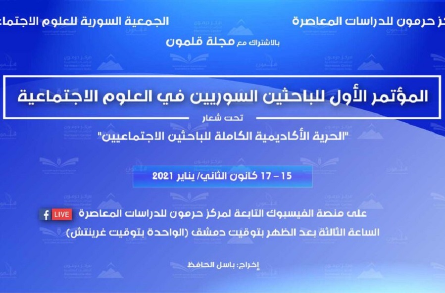 ينظم مركز حرمون للدراسات المعاصرة والجمعية السورية للعلوم الاجتماعية، بالاشتراك مع مجلة “قلمون”، المؤتمر الأول للباحثين السوريين في العلوم الاجتماعية، تحت شعار “الحرية الأكاديمية الكاملة للباحثين الاجتماعيين”، ما بين يومي 15 و17 من الشهر الجاري.