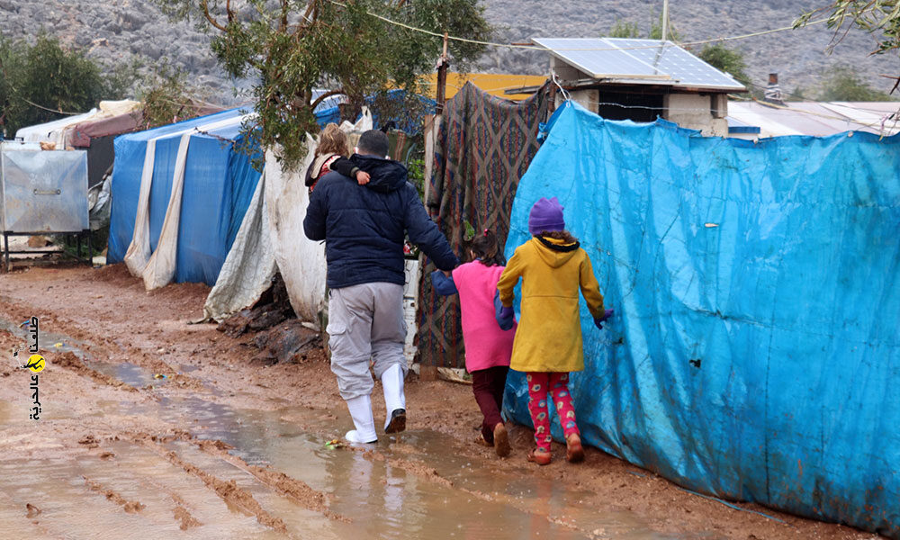 أحمد العلوش (46 عاماً) نزح من ريف حماة ويعيش مع زوجته وأولاده الأربعة في مخيم تابع لبلدة أطمة الحدودية مع تركيا. يشكو من غرق خيمتهم: “لقد غمرت مياه الأمطار خيمتنا، وباتت أغراضنا تسبح في الماء والوحل، لم تصمد السواتر التي وضعتها حول الخيمة من التراب والحجارة أمام غزارة الأمطار، وأطفالي لا يستطيعون الذهاب إلى المدرسة في الأيام الماطرة”.