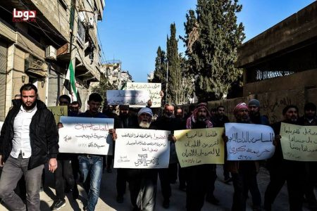 خرجت ظهر الثلاثاء 07/03/2017 مظاهرة في مدينة دوما مطالبة باغلاق مكاتب المجلة طلعنا عالحرية في المدينة، وجاء تحرك المتظاهرين بعد نشر مقالة رأي للكاتب شوكت غرز الدين بعنوان “يا بابا شيلني”، لما احتوته من تعرض مسيء للذات الإلهية.