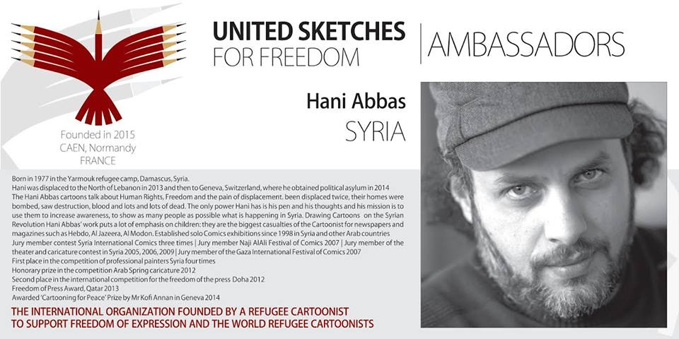 اختير رسام الكاريكاتير الفلسطيني السوري هاني عبّاس سفيرًا لمؤسسة “United Sketches for Freedom “ الدولية ممثّلًا سوريا، المؤسسة الدولية التي مقرّها فرنسا؛ اختارت عبّاس لمساهمته الكبيرة في ترسيخ قيم الحرية من خلال رسوماته، يذكر أنّ هاني عبّاس قد حصل العام الماضي على أرفع جائزة كاريكاتير في العالم وتم تكريمه في الأمم المتحدة.