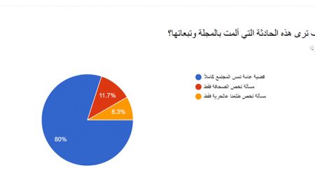 الاستبيان شمل جميع من شارك في العمل في المجلة خلال خمس سنوات من عمرها، سواءً في فريقها الأساسي أو من الكتاب والصحفيين...