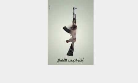 أوقفوا تجنيد الأطفال سمير خليليرسام كاريكاتير سوري فلسطيني